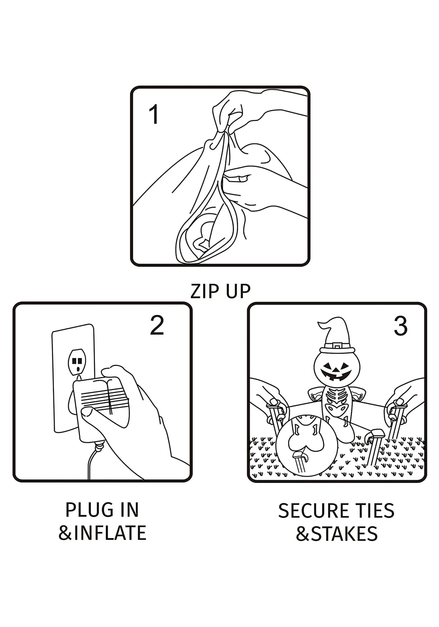 This inflatable ghost is easy to inflate. Simply zip up the fabric, plug in the fan, and secure the ties with stakes to hold the ghost in its place. The monstrous expression on this ghost’s face is sure to send shivers through all the trick-or-treaters in your neighborhood. Lit from within by LED lights, this ghost will delight onlookers both day and night.