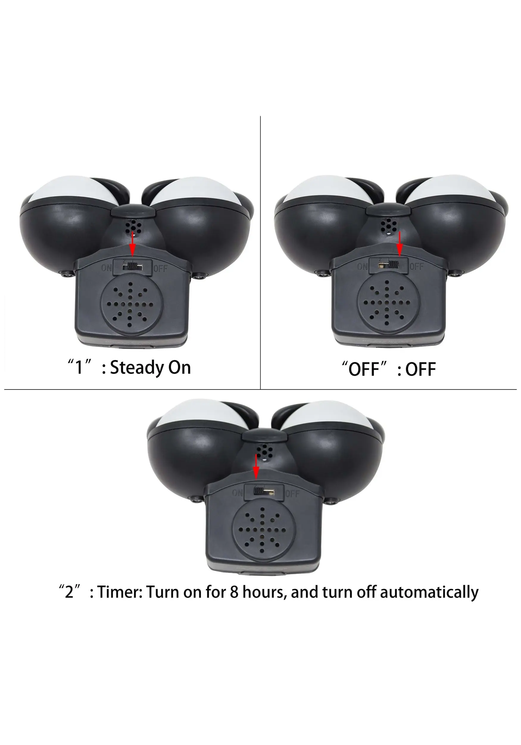 - 2 light modes: steady light w/ creepy sound activation and timer mode w/ creepy sound activation shuts off during the day