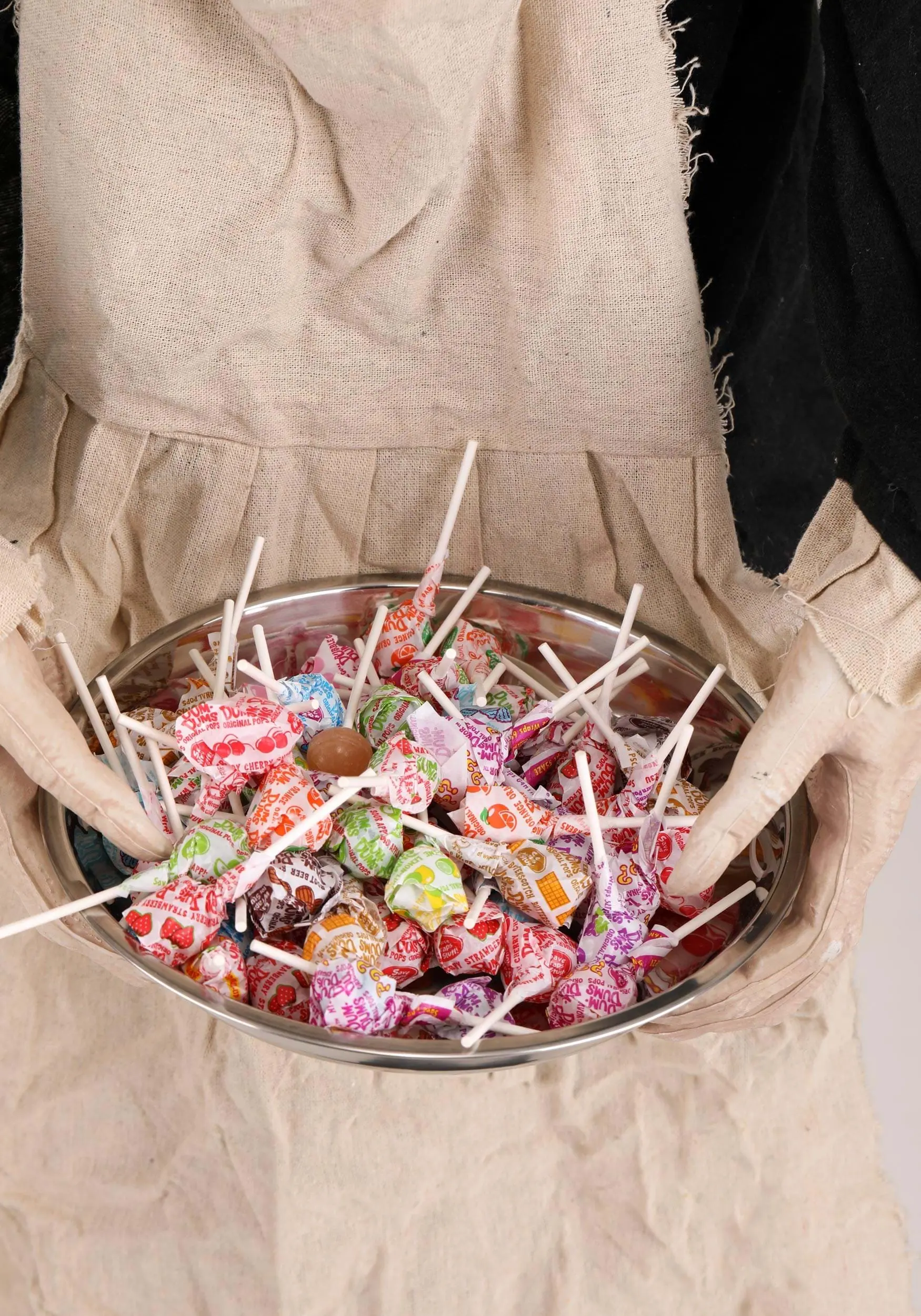 - Molded poly-foam face and hands with realistic details, polyester and broadcloth fabrics.