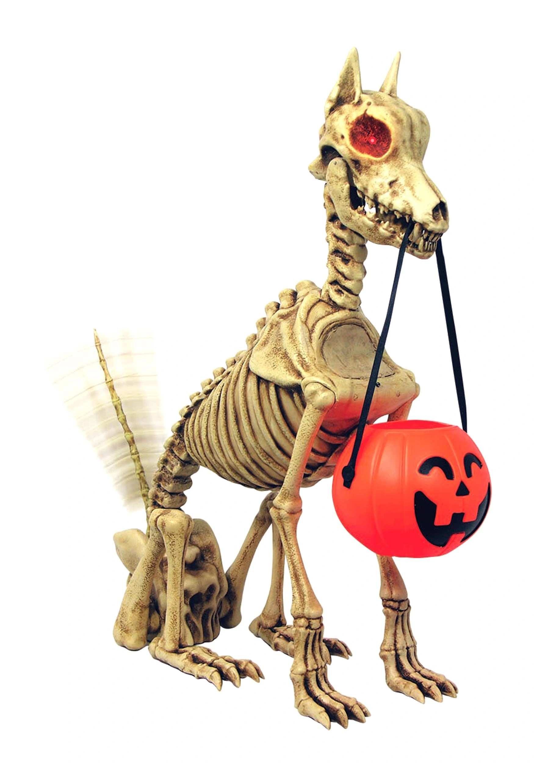 Make sure that your Halloween feels filled with puppy pride when you bring home this Animatronic Skeleton Dog. This Halloween prop stands in an excitable pose that’s made even more obvious when you switch on the wagging tail! The molded plastic has a solid chest (so you don’t need to worry about the guy snitching your snacks in its ribcage).