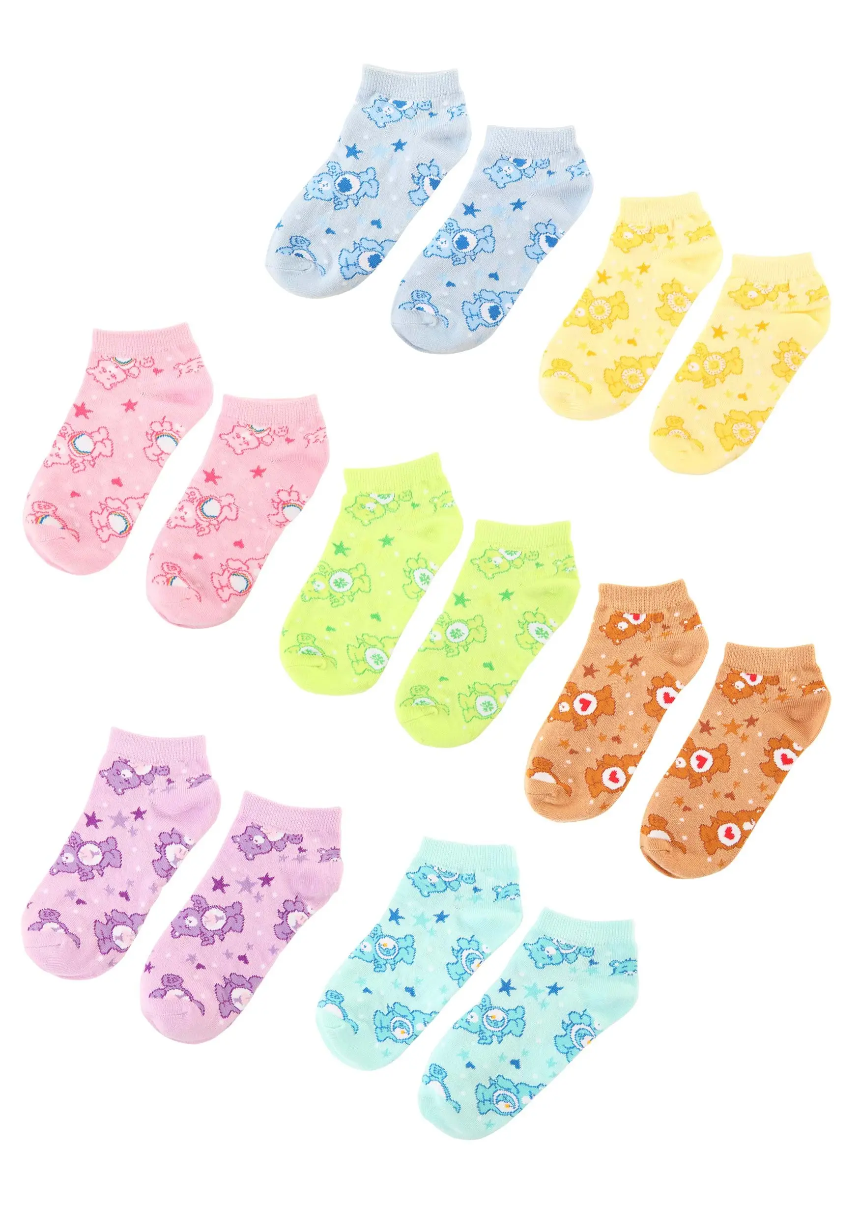 Take a deep breath, let hope fill your heart, and click away to add these officially licensed Care Bears All-Over Bears Socks to your cart. These are a Made By Us design that add the delightful outlook of your favorite Care Bear characters to seven pairs of ankle socks! Pair them with any outfit to bring an extra dose of festive fun or wear them on their own around the house to keep warm (and cute!) while enjoying a day to yourself!