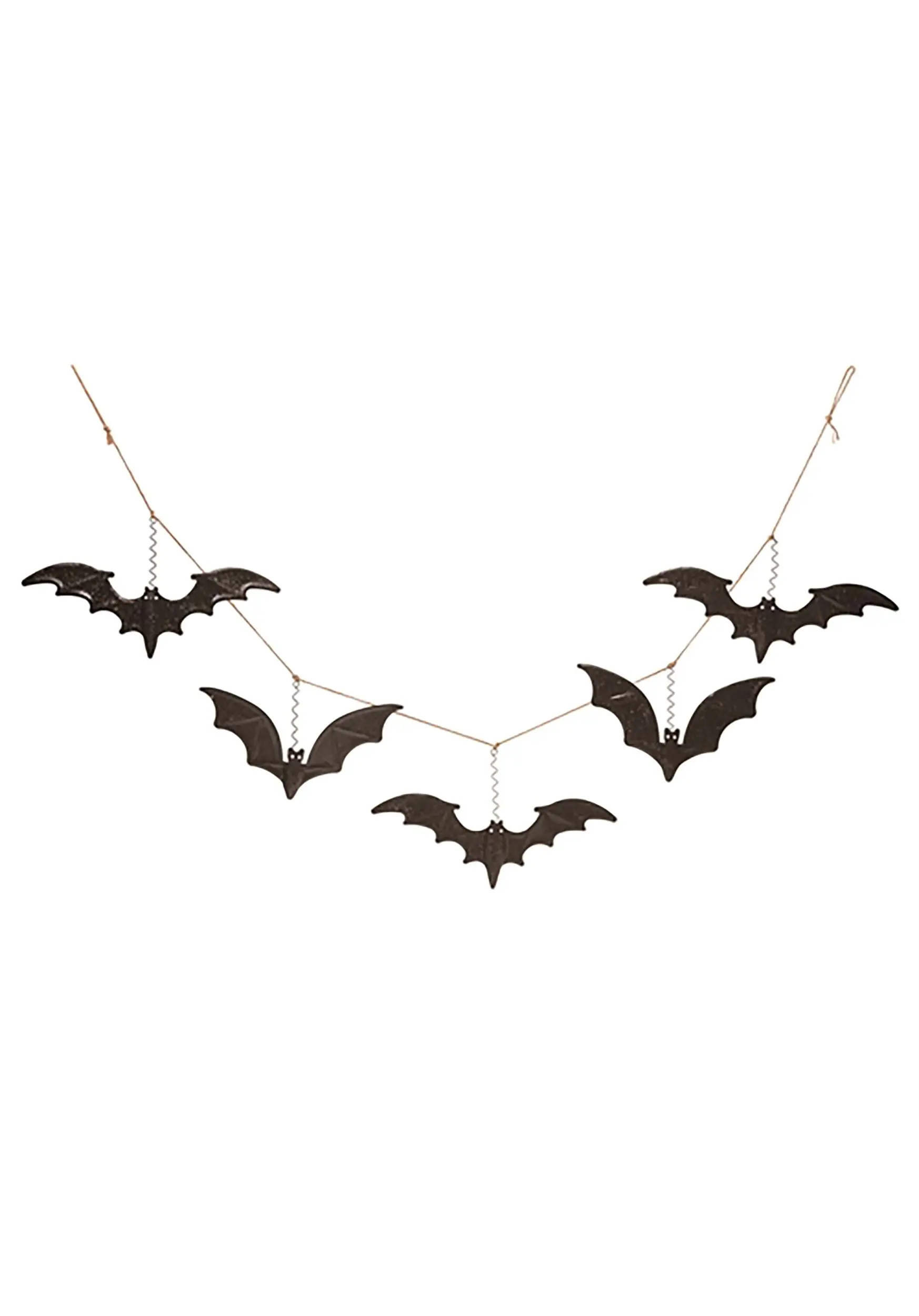 - Glittery black bat are secured to metal spirals