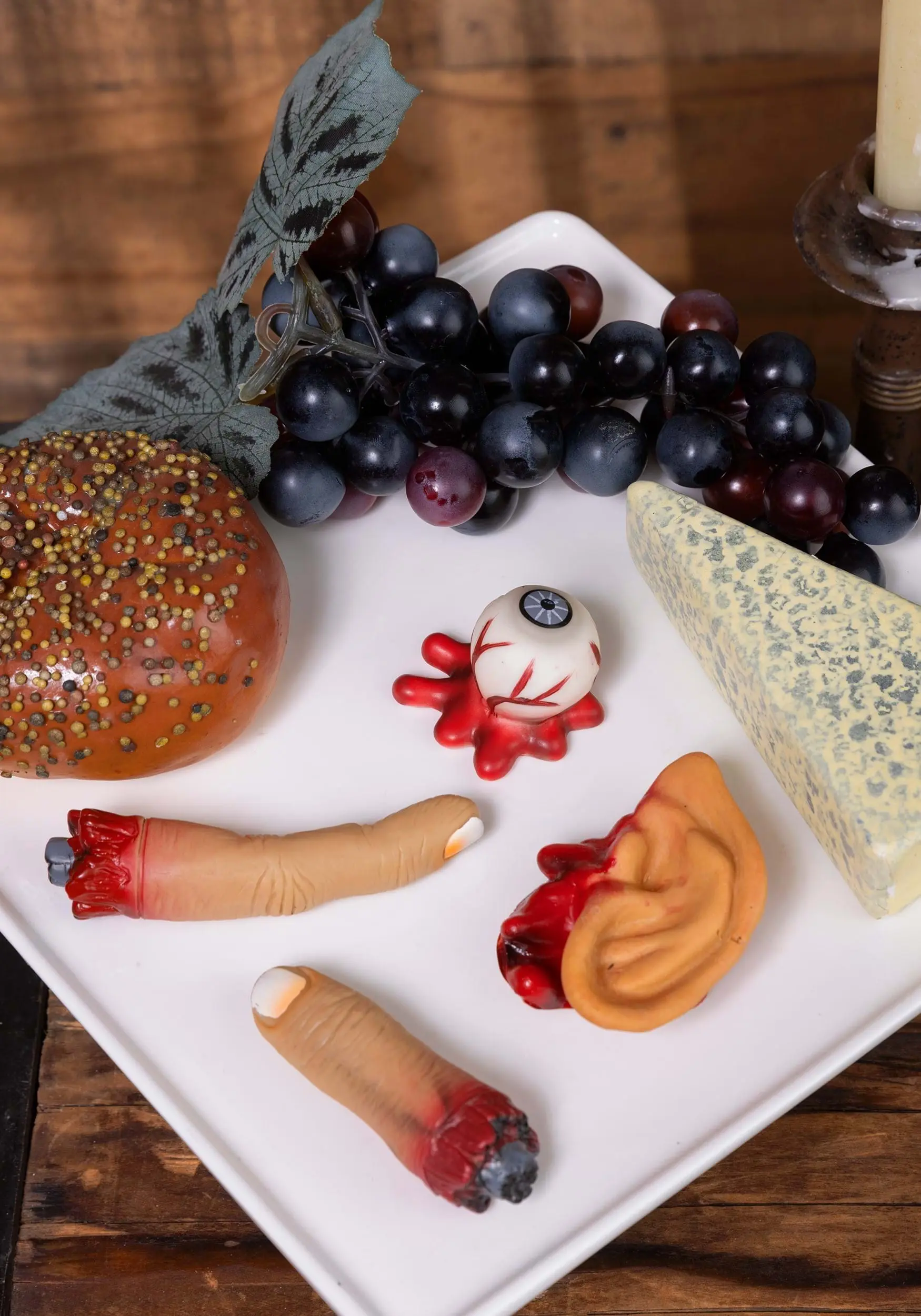 - Severed fingers, ear, and eyeball props