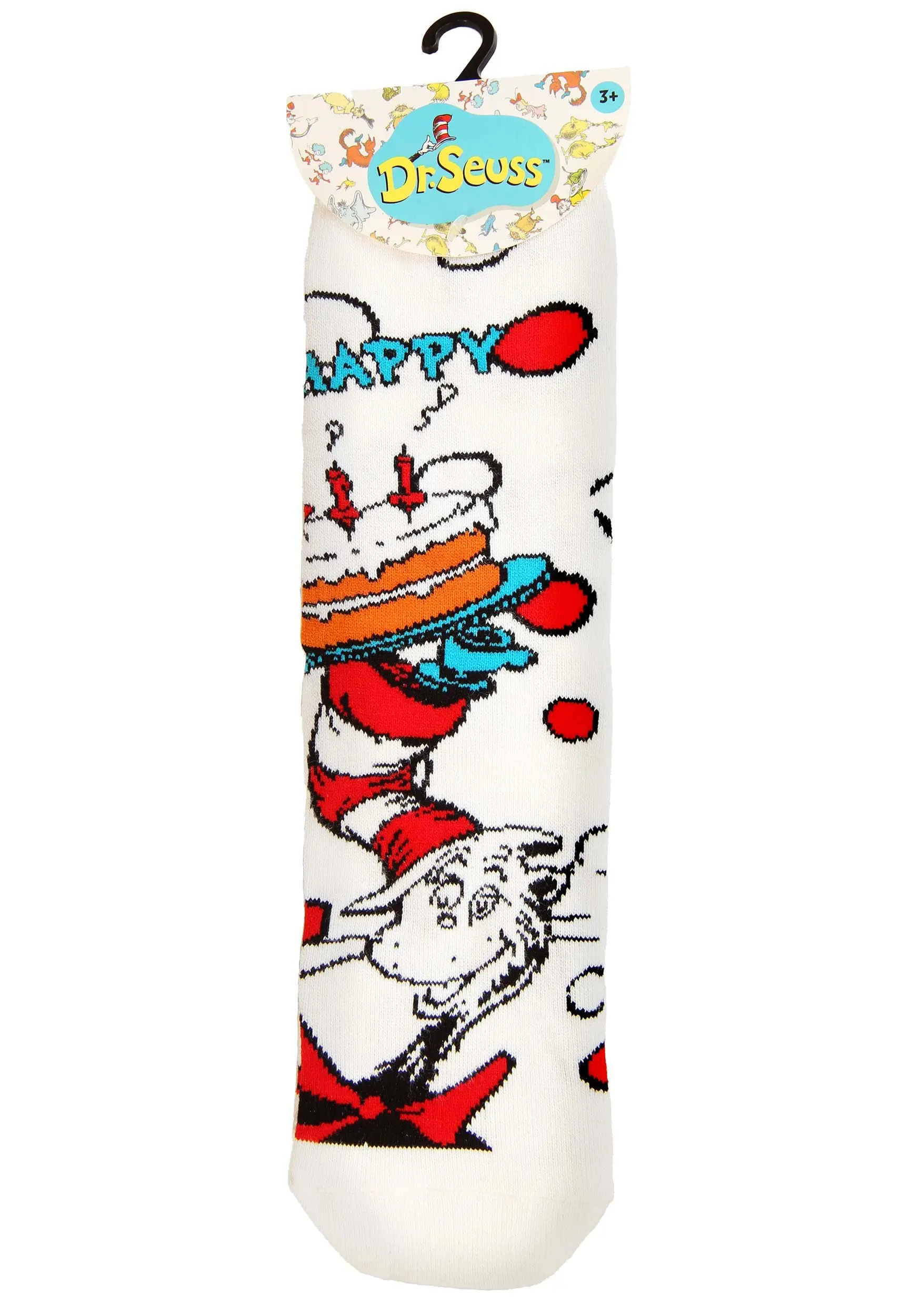 These Cat in the Hat Birthday Socks are officially licensed from the Dr. Seuss book and feature a knit-in design of Cat in the Hat, along with Thing 1 and Thing 2. They’re made out of an acrlyic, nylon, and spandex blend, giving them a nice and snug fit. They’re the perfect way to start out any day, especially a birthday!
