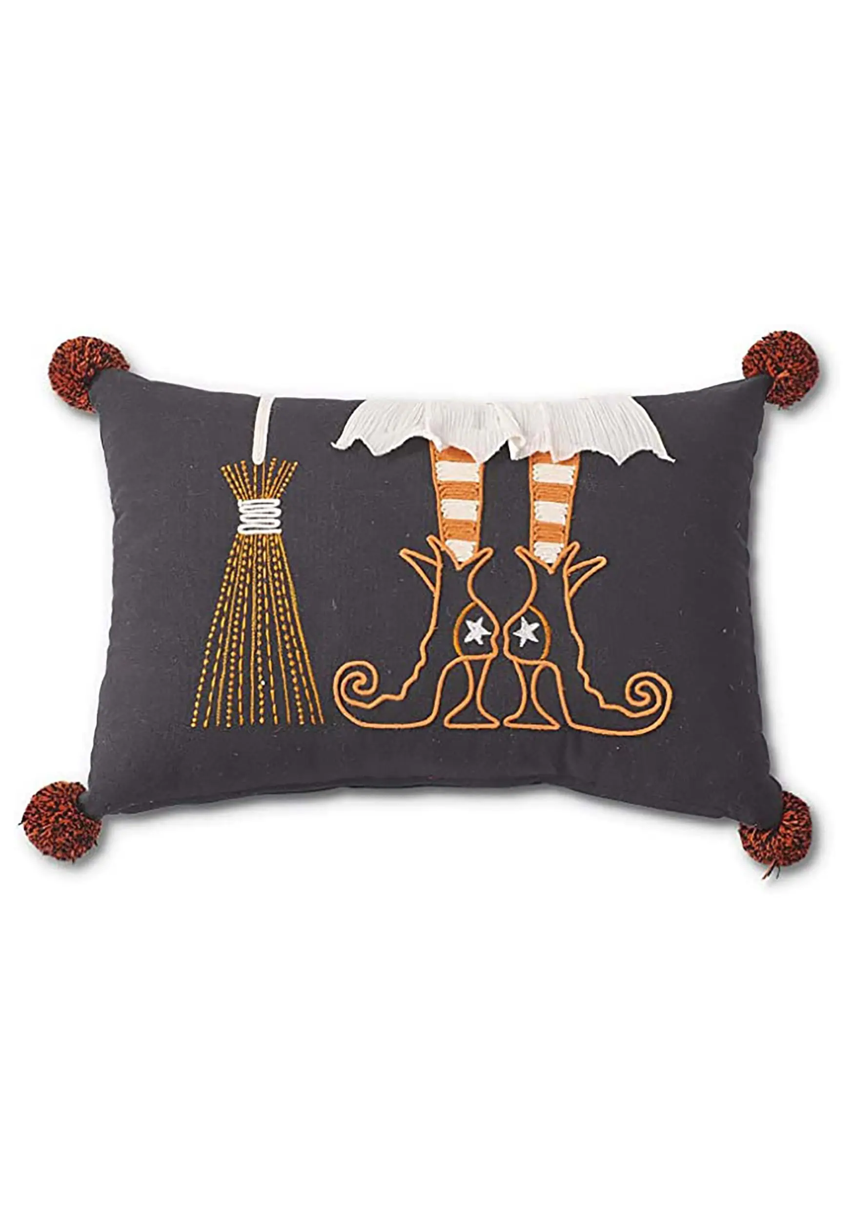 This is a Rectangular Witch Boot and Broom Pillow.